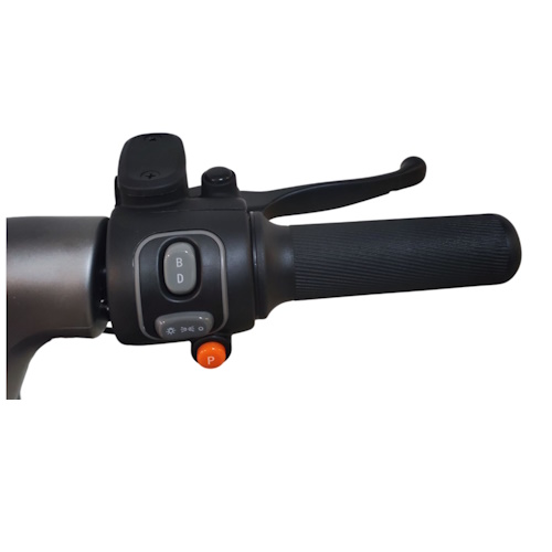 ИНТУИТИВНО ПОНЯТНЫЕ ОРГАНЫ УПРАВЛЕНИЯ: ПРАВЫЙ ПЕРЕДНИЙ И ЛЕВЫЙ ЗАДНИЙ РЫЧАГИ ТОРМОЗА, АНАТОМИЧЕСКИЕ ГРИПСЫ С ПРОТИВОСКОЛЬЗЯЩЕЙ ТЕКСТУРОЙ, БЛОКИ УПРАВЛЕНИЯ С ПЕРЕКЛЮЧАТЕЛЯМИ СВЕТА, ПОВОРОТОВ, КНОПКАМИ ПОДАЧИ ЗВУКОВОГО СИГНАЛА И ПАРКИНГА. ЦВЕТНОЙ ИНФОРМАТИВНЫЙ ДИСПЛЕЙ С СВЕТООТРАЖАЮЩИМ КОЗЫРЬКОМ.