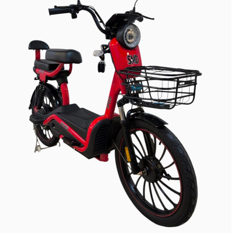 | short_desc | Бренд SMD Модель SPEED Габариты (Д/Ш/В): 1700/670/800 Общий вес, кг - 53. Металлическая крашенная рама Яркая светодиодная фара Передние и задние указатели поворотов Задний габаритный фонарь с стоп-сигналом Зеркала Сигнализация с функцией блокировки электромотора и дистанционным запуском ЖК-дисплей с индикатором заряда АКБ, спидометром и одометром Ёмкость Li-ion АКБ 15Ач Напряжение 48В Максимальная мощность электромотора в режиме длительной нагрузки 240Вт Пиковая мощность электромотора 500Вт Макс. скорость до 25км/ч Пробег на одном заряде до 40км Нагрузка до 140 кг Вместительная корзина Заднее сиденье c опорной спинкой Литые диски, колёса 20 дюймов, размер шин 20*2,5 Передний и задний барабанные тормоза Передняя амортизационная вилка + двойные задние амортизаторы Подножки для постановки ног райдера Привод задний Тип передачи цепная Страна производства Китай |